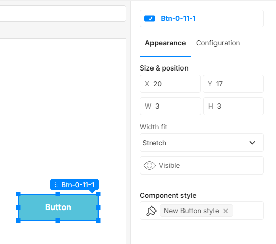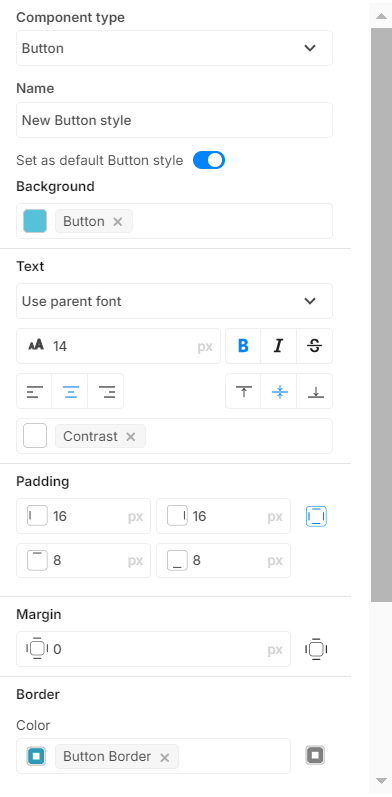 Now, when you add a new Button component to the canvas, the style will automatically be applied.