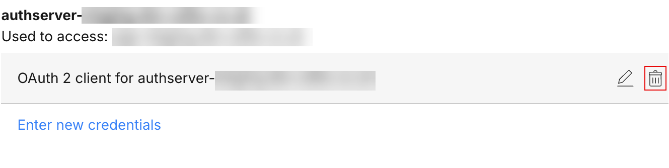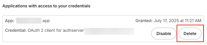 - Delete credentials by clicking the Delete button that appears when you hover over the credential you want to remove.
