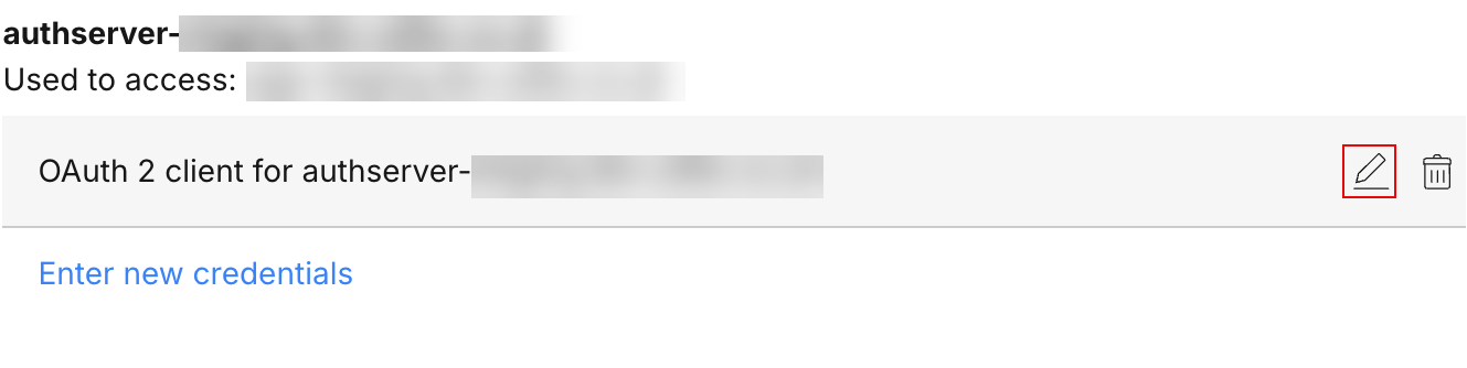 - Enter new credentials (for example, a Client ID and a Client Secret).